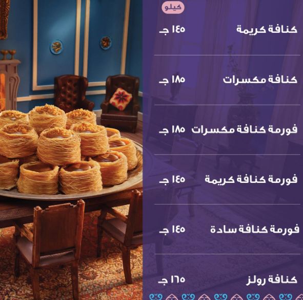 منيو حلواني العبد في رمضان 2023 كنافة وبسبوسة وقائمة كاملة بالأسعار