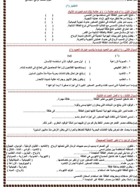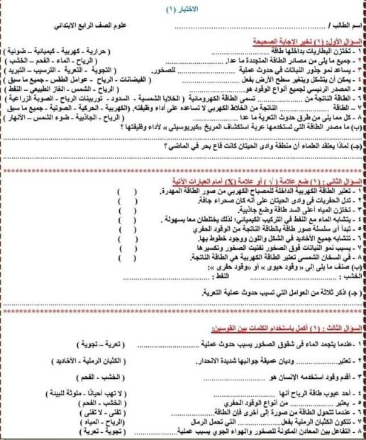 نماذج امتحانات علوم رابعة ابتدائي الترم الثاني 2023
