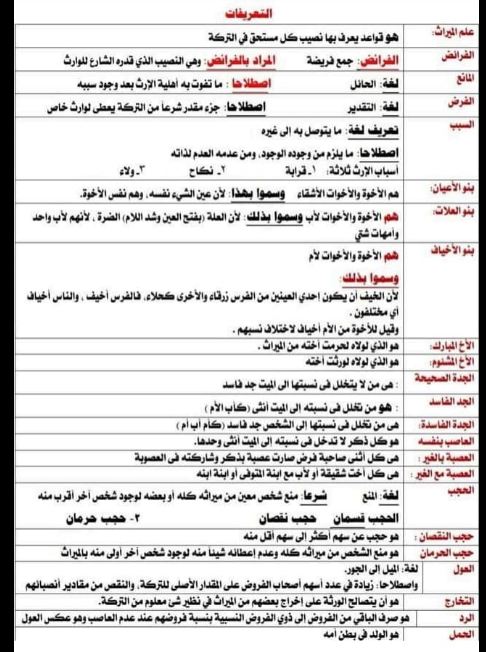 ينشر موقع "خدمة فوريو"، ملخص علم المواريث كامل للصف الثالث الثانوي الأزهري 2023.
