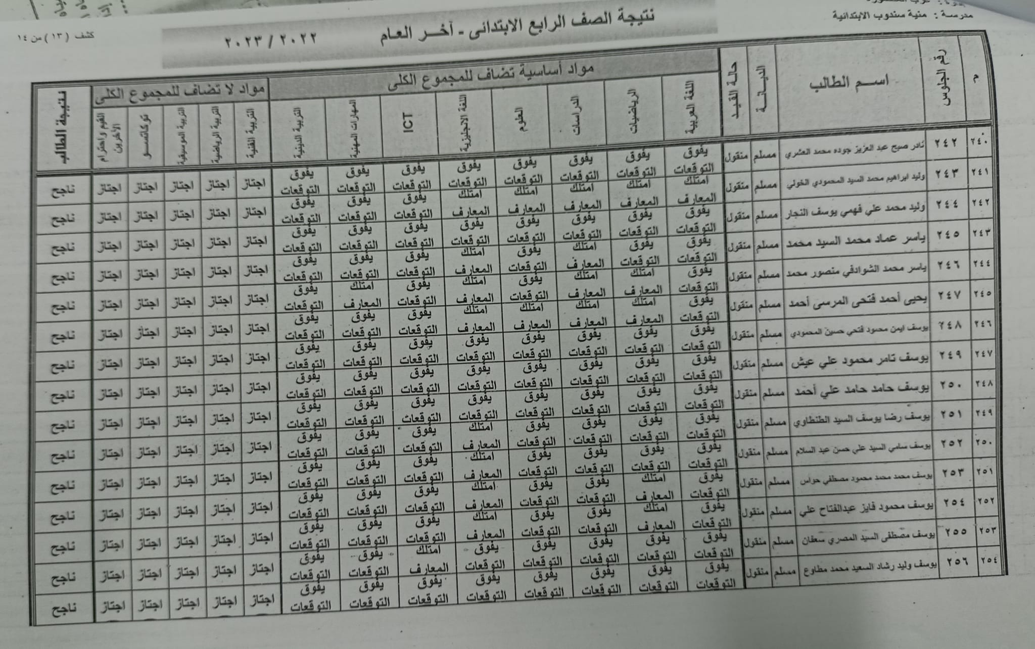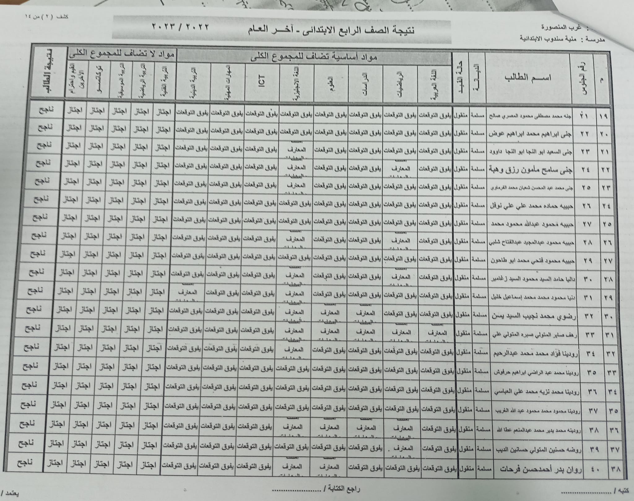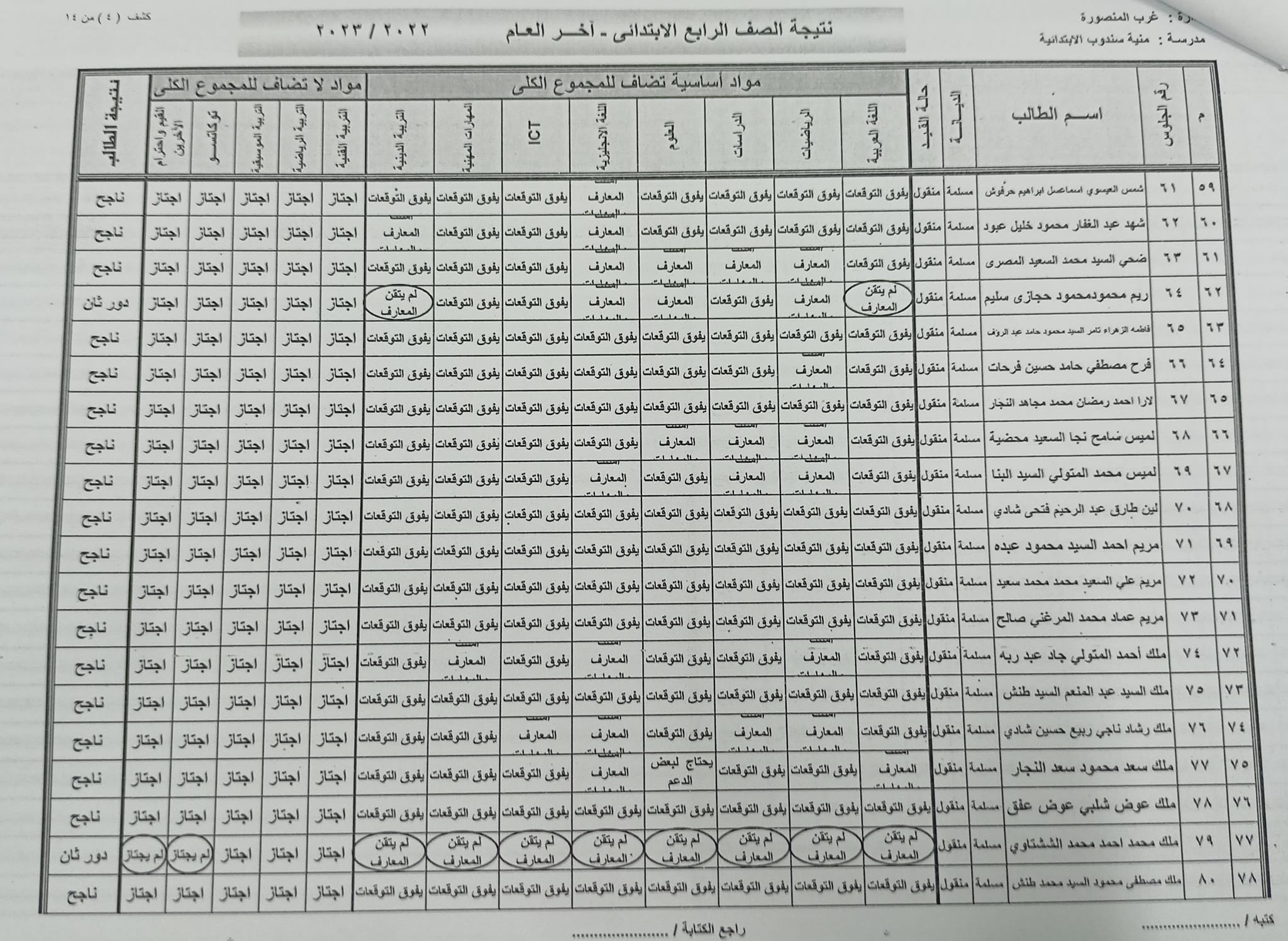 ومن المقرر أن تعلن نتائج الصف الرابع الابتدائي عبر المدارس أو في الإدارات التعليمية، وقد جاءت نتائج الصف الرابع الابتدائي في محافظة الدقهلية كالتالي: