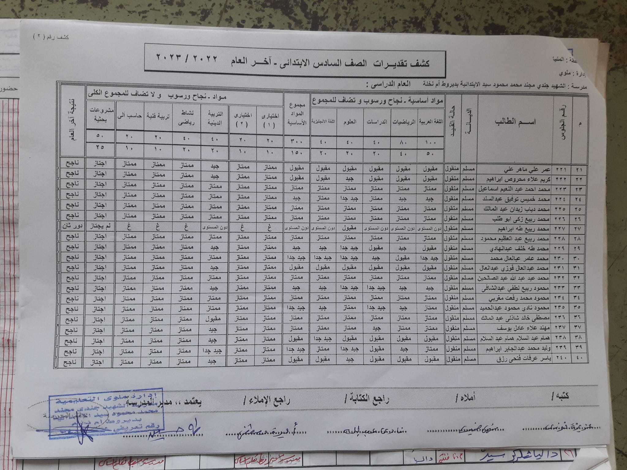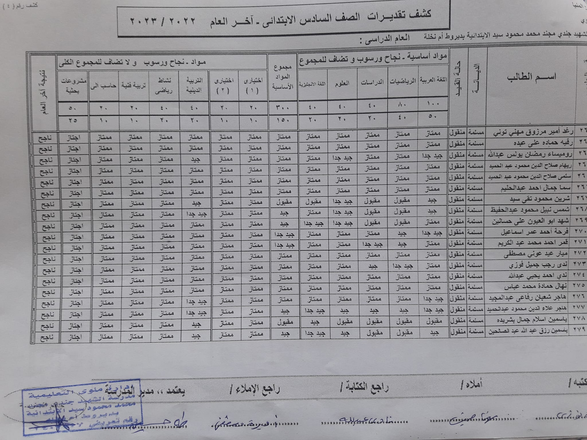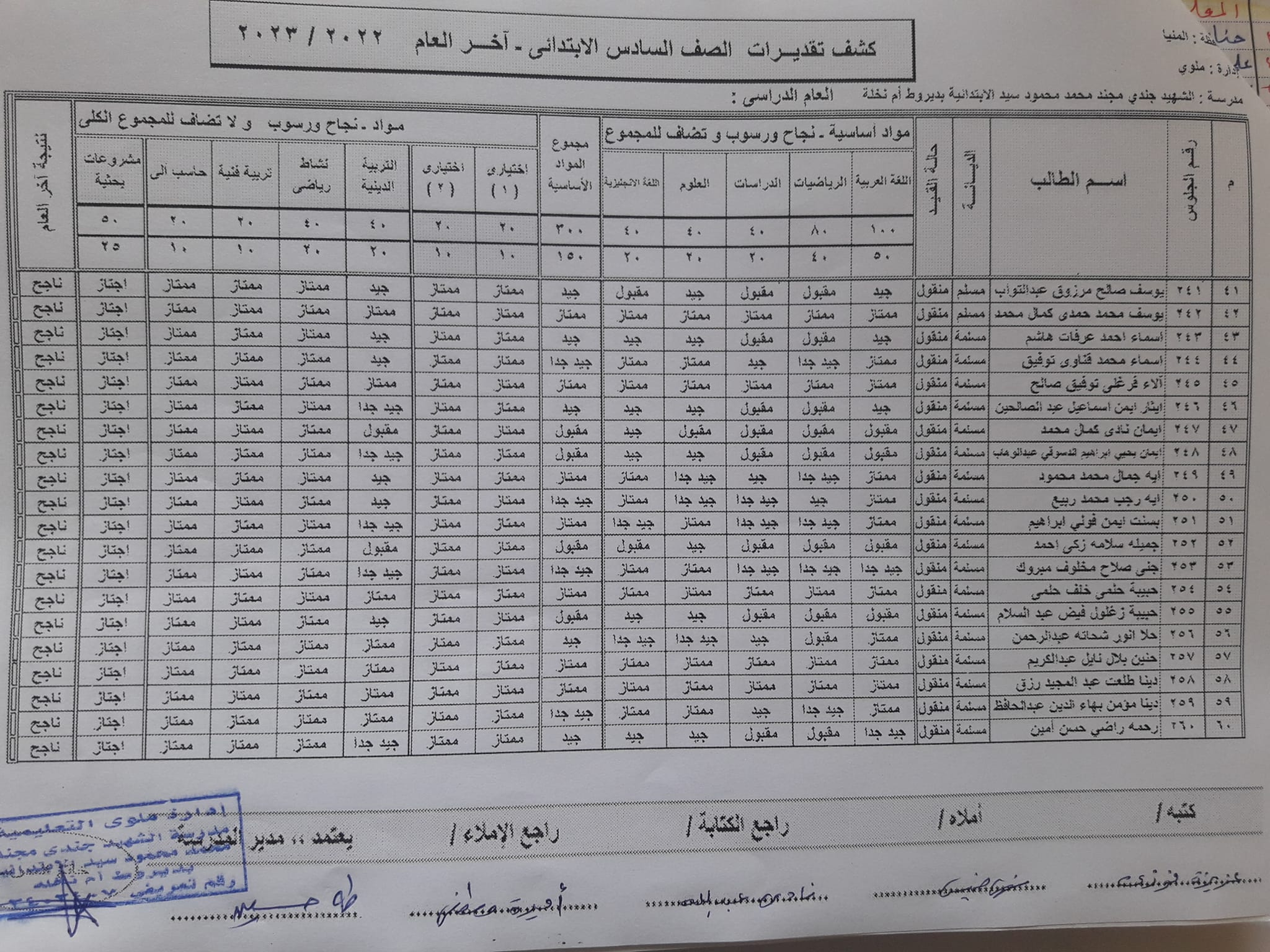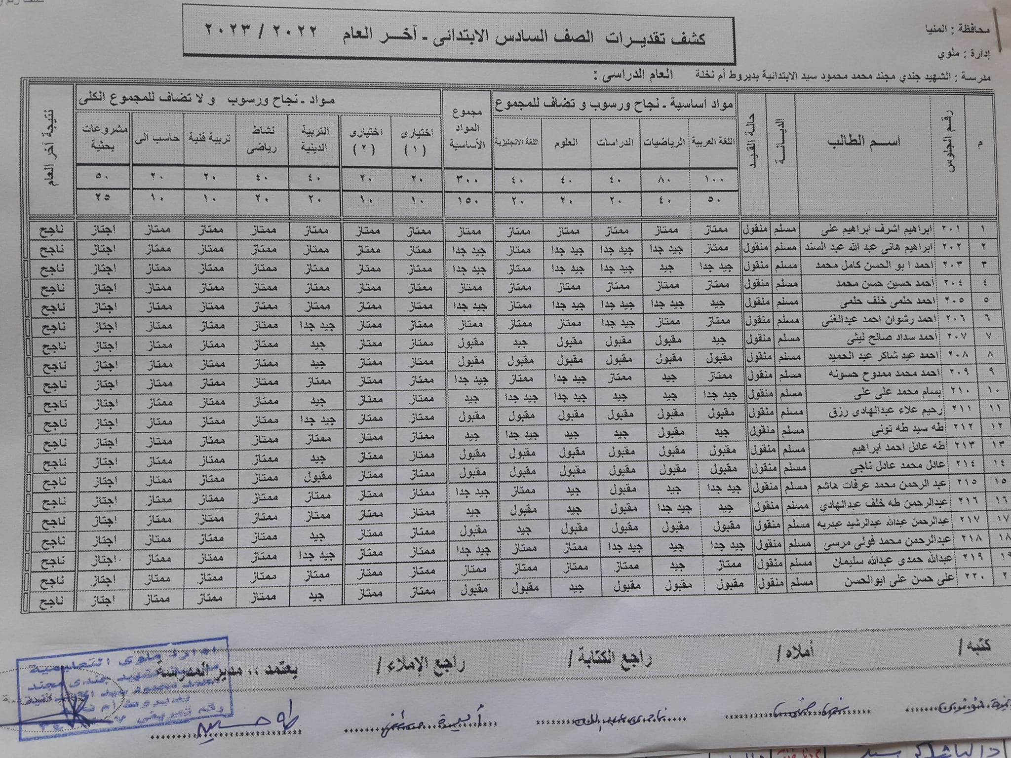نتيجة الصف السادس الابتدائي الترم الثاني 2023 محافظة المنيا.. الكشوفات كاملة