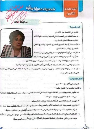وفوجئ طلاب الصف السادس الابتدائي عند اطلاعهم على توزيع منهج المهارات المهنية بوجود الفنانة سميحة أيوب ضمن الشخصيات المصرية المؤثرة التي لعبت دورًا هامًا في الدراما المصرية على مدار عقود مضت.