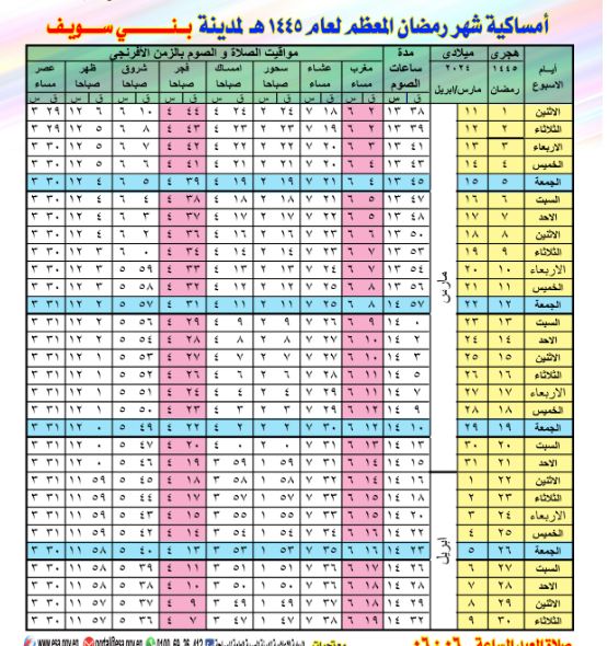 وإلى باقي إمساكية شهر رمضان محافظة بني سويف 2024 من هنا: