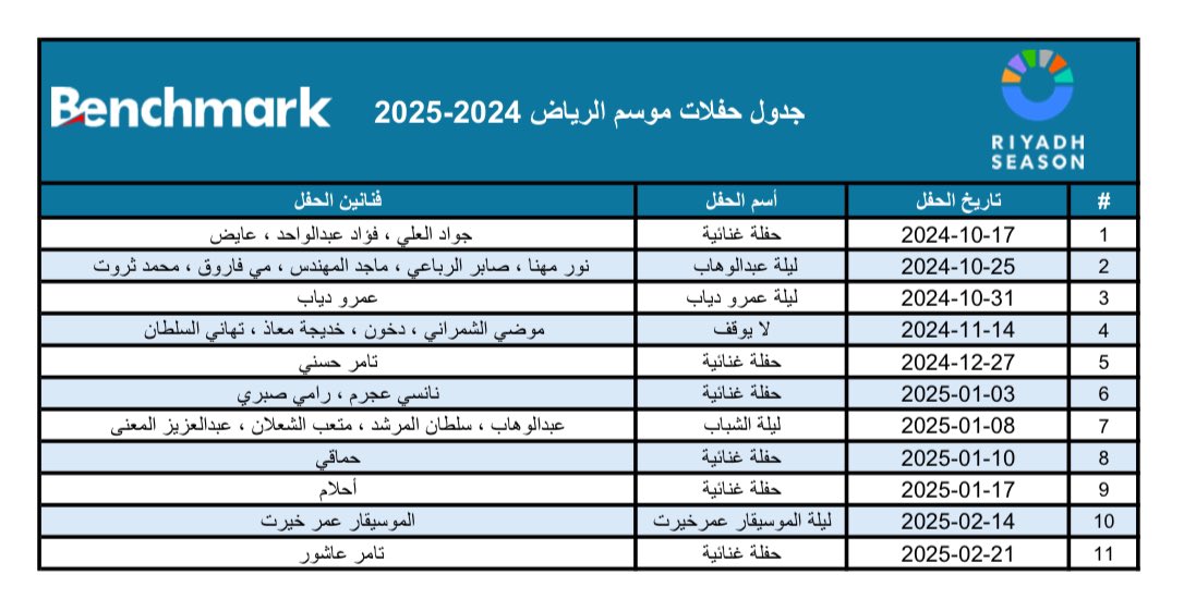 وجاءت أبرز جدول حفلات موسم الرياض 2024-2025، على النحو التالي: