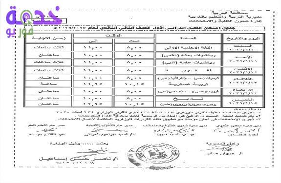 أعلنت مديرية التربية والتعليم بمحافظة الإسكندرية عن جدول امتحانات الصف الثاني الثانوي العام (الشعبة العلمية) للفصل الدراسي الأول 2025 / 2026.